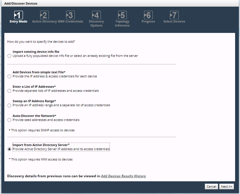 Add/Discover Devices - Import from active directory server