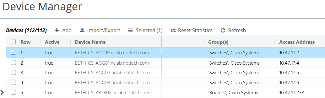 After you have imported the devices, you can see them in the Device Manager, as shown in the following screen.