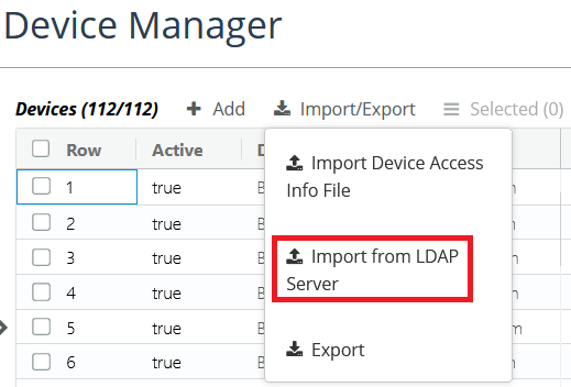 To import devices using LDAP in the Device Manager