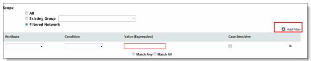 When the Scope is set to Filtered Network, you must define a matching filter. The Grouping Rule panel will display Match Filter properties for configuring the matching criteria, as shown in the following figure.