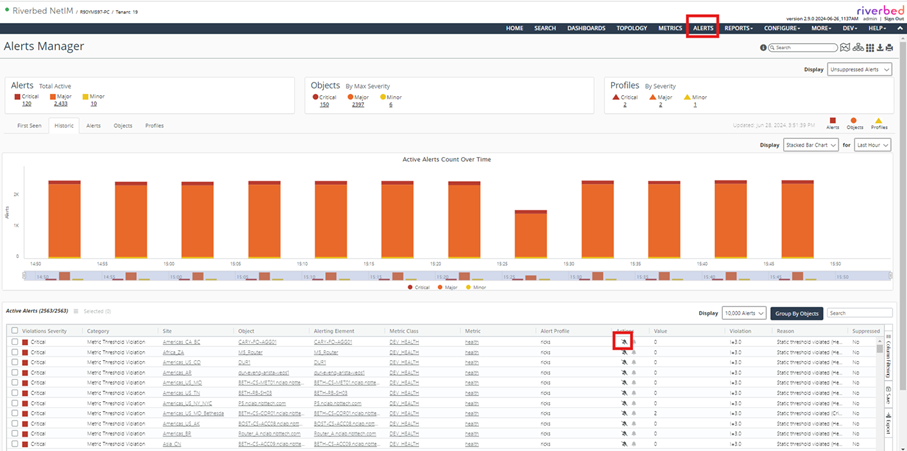 In the Alerts Manager page, if you want to disable several alerts that have similar characteristics (same metric class and same metric field), you can select them and create the alert suppression rule.