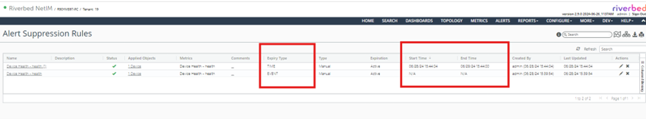 The expiry type is configured when creating the rule. Rules can be created by clicking on the suppression icon in either the Alerts Manager or in the Alerts tab for any object.