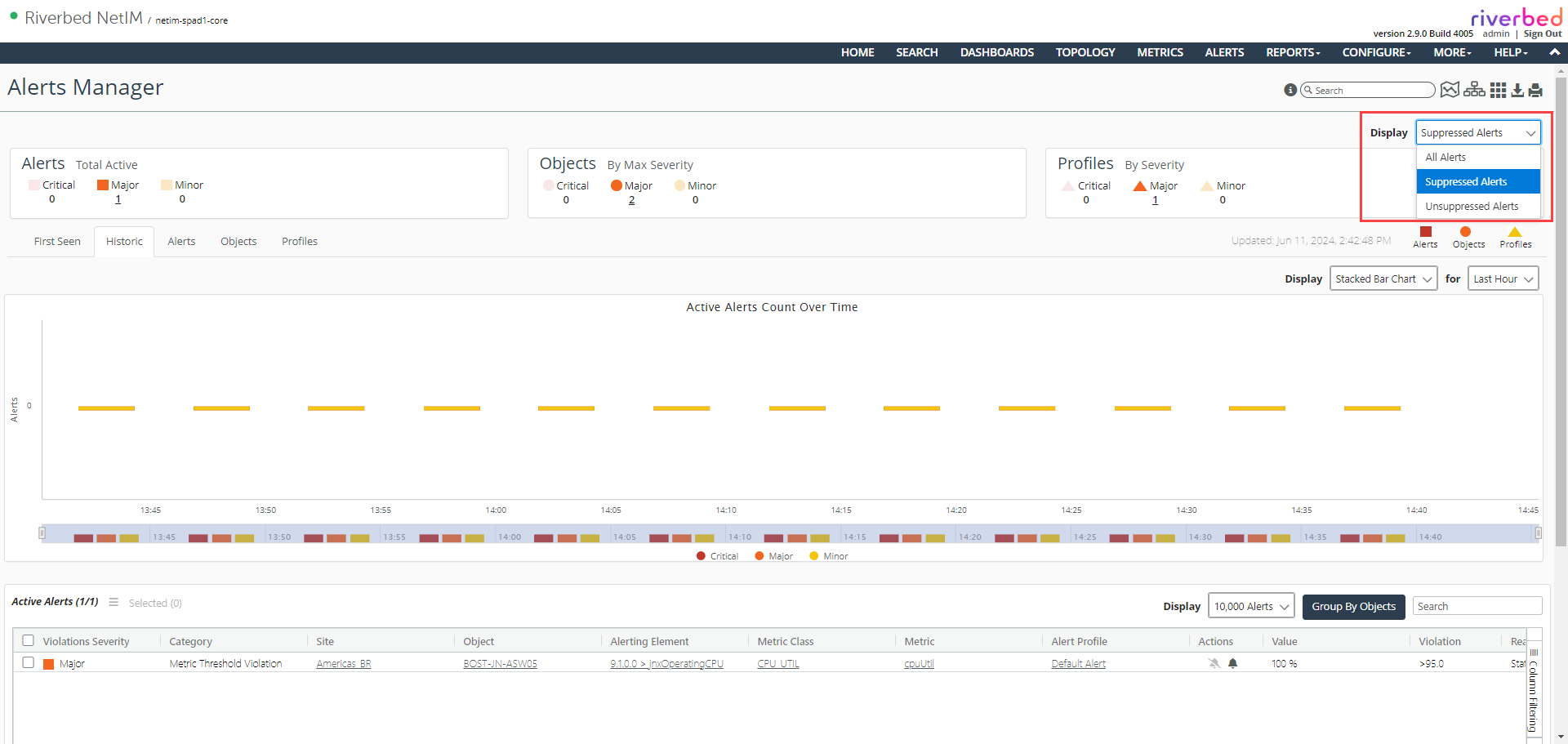 You can view all alert suppression rules in operation under Configure > All Settings > Alert: Alert Suppression Rules.