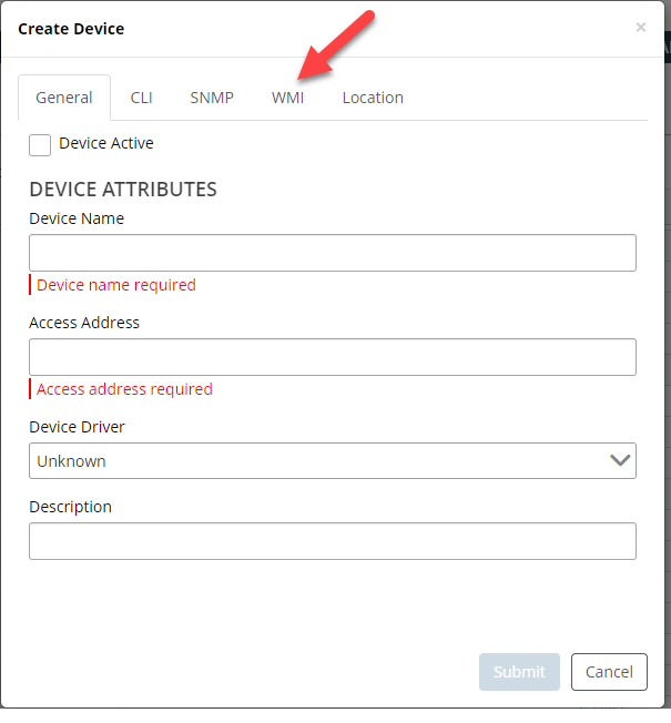 Adding devices for WMI polling and attribute collection