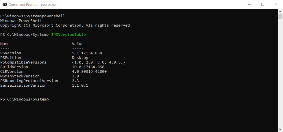 PS C:\WINDOWS\system32> $PSVersionTable
