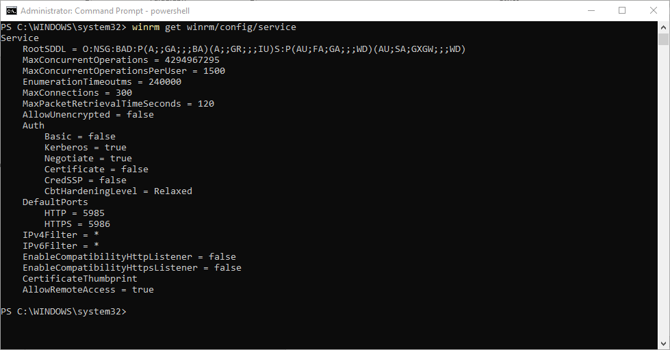 PS C:\WINDOWS\system32> winrm get winrm/config/service