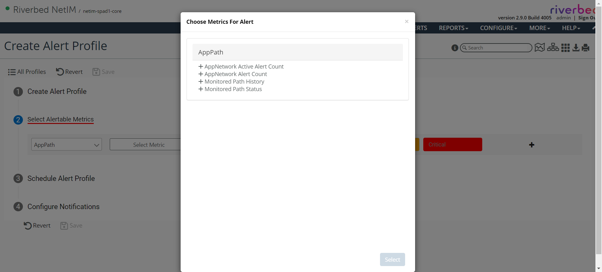 4. In the Select Available Metrics section, select AppPath and click in the Metrics box.