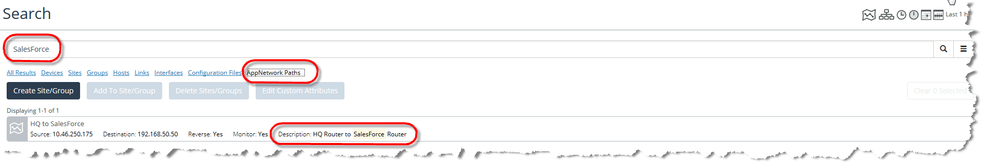 Monitored Paths are now presented as a filterable object in search results, and you can search for a specific monitored path by name, source, destination, and description, as shown in the following screen.