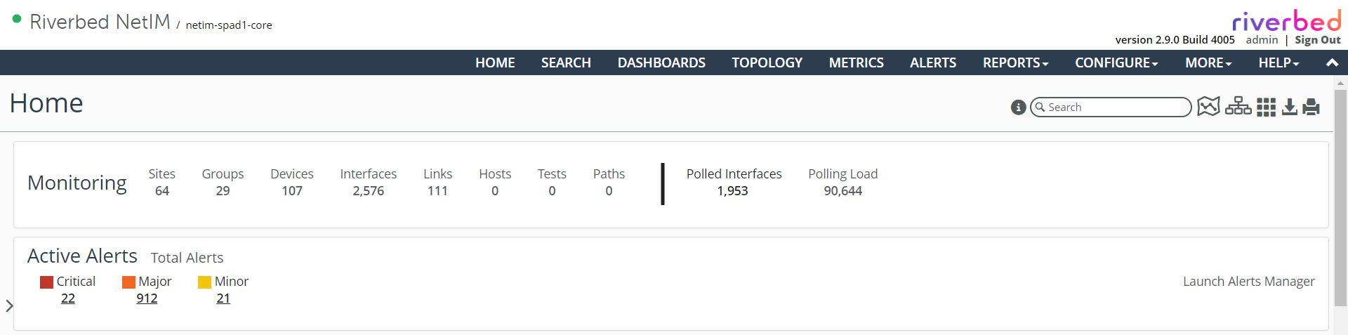 • Active Alerts Summary Frame—Provides a summary of total active Critical, Major, and Minor Alerts, Objects, and Profiles by severity, as shown in the following screen.