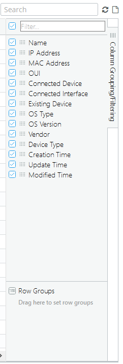 • To display or remove columns, check or uncheck columns in the Column/Grouping Filtering frame, as shown in the following screen.