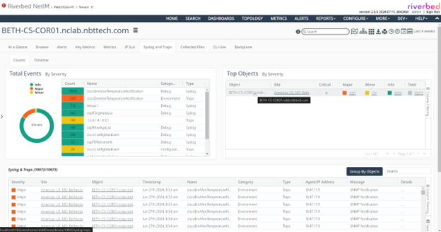 It also provides details on which object in the infrastructure are generating these notification events, along with their severity levels.