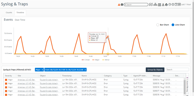 The Timeline view provides more visibility into when the notifications occurred based on their severity. This view can also be used to filter the events based on the time of their occurrence.