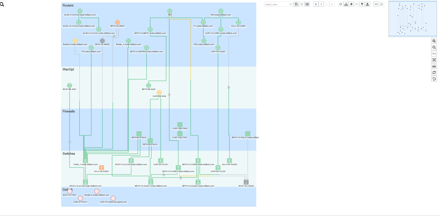 Example of hierarchical layout applied to a site topology